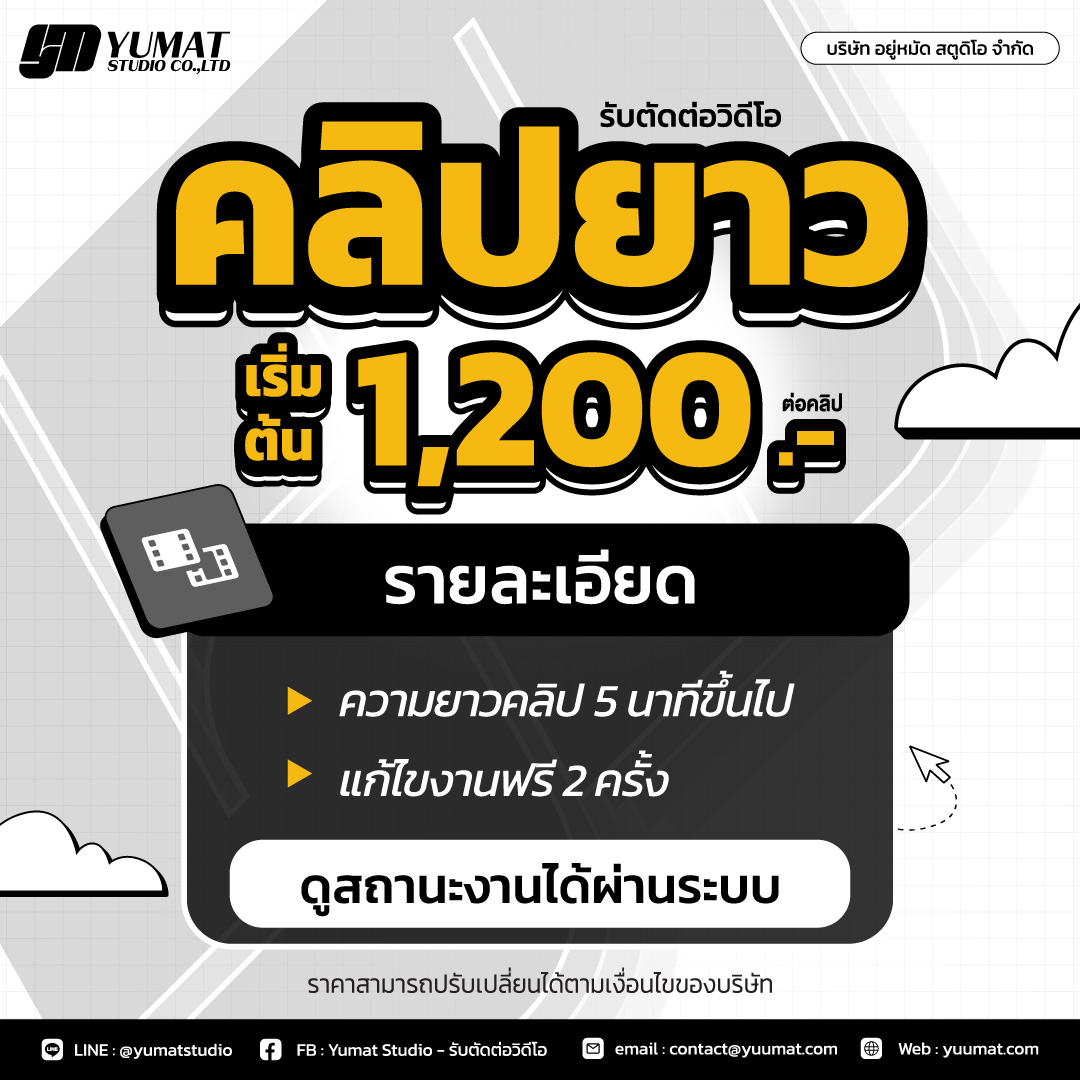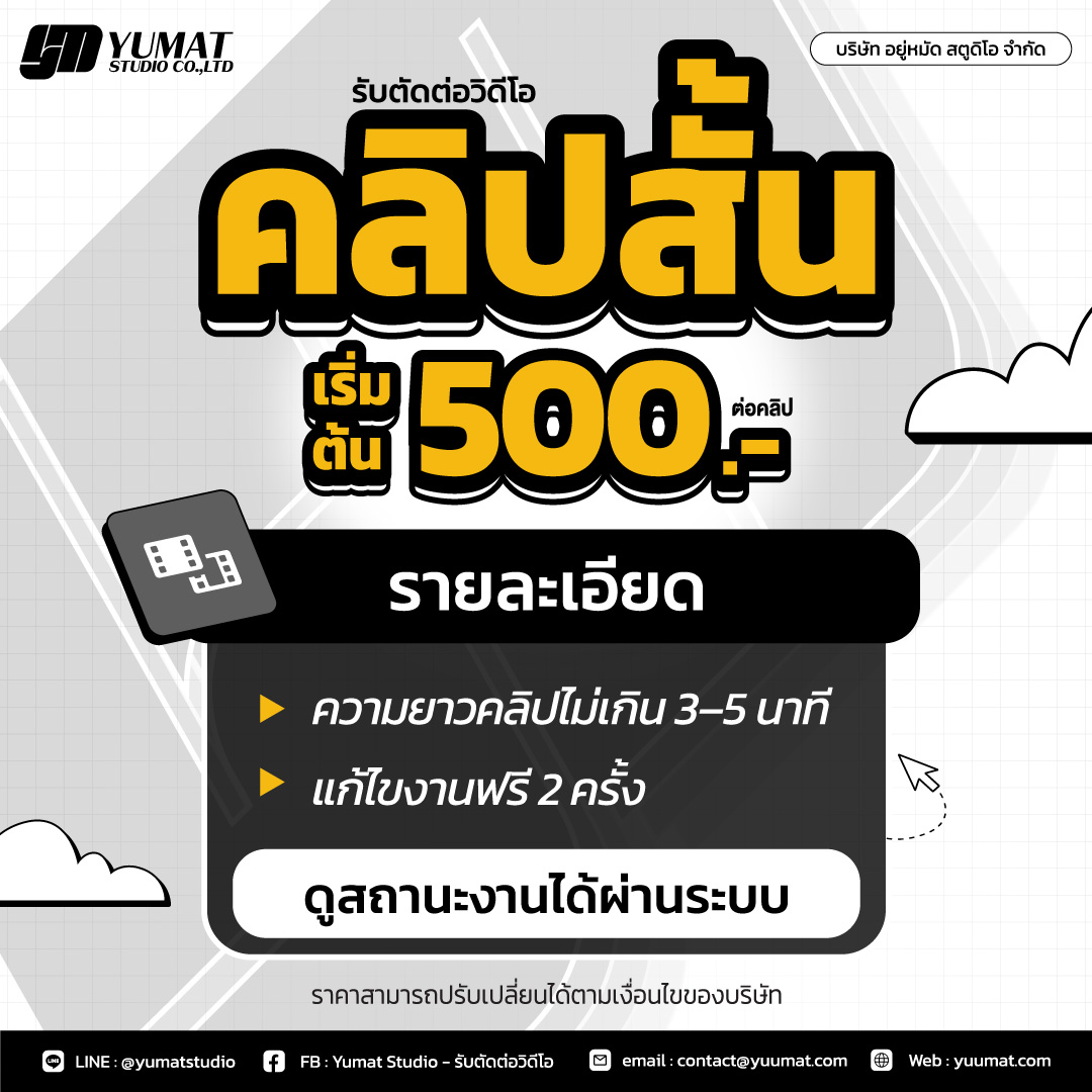 รับตัดต่อวิดีโอ แพ็กเกจเหมาสุดคุ้ม บริการ แพ็กเกจตัดต่อวิดีโอราคาประหยัด เหมาะสำหรับผู้ที่ต้องการผลิตคอนเทนต์อย่างต่อเนื่อง เช่น คลิปขายสินค้า คลิปโปรโมทธุรกิจ หรือคอนเทนต์สำหรับโซเชียลมีเดีย ไม่ว่าจะเป็น คลิปสั้นหรือคลิปยาว ทีมงานพร้อมดูแลการตัดต่ออย่างเป็นระบบ เพื่อให้ได้วิดีโอที่พร้อมใช้งานและเหมาะกับแพลตฟอร์มออนไลน์ แพ็กเกจนี้เหมาะสำหรับธุรกิจ ร้านค้าออนไลน์ หรือครีเอเตอร์ที่ต้องการ ผลิตคอนเทนต์หลายคลิปในราคาที่คุ้มค่ามากขึ้น ตัวอย่างผลงานสามารถดูเพิ่มเติมได้ที่👉 [ผลงานตัดต่อวิดีโอของเรา] แพ็กเกจ 5 คลิป คลิปสั้นจาก 2,500 บาท