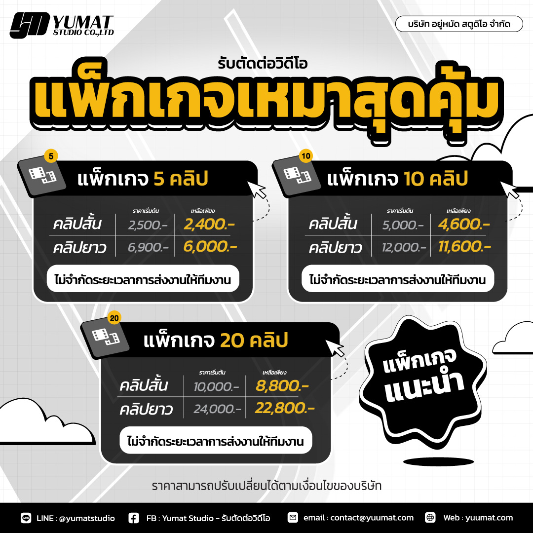 รับตัดต่อวิดีโอ แพ็กเกจเหมาสุดคุ้ม